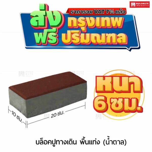 บล็อกปูพื้น รุ่น ศิลาเหลี่ยม สีน้ำตาล ขนาด 10×20 ซม. หนา 6 ซม.