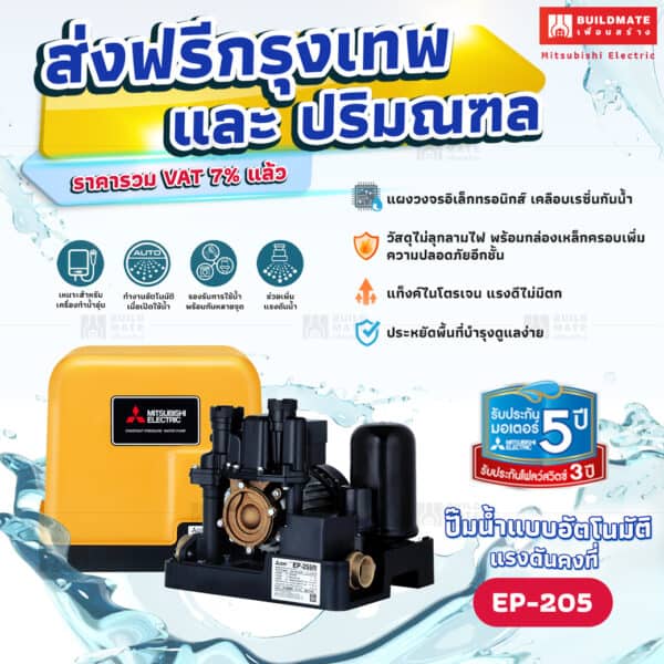 MITSUBISHI ปั๊มน้ำอัตโนมัติแรงดันคงที่ 200W รุ่น EP-205R