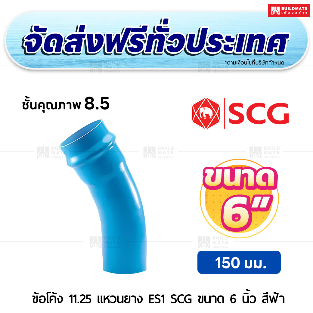 ข้อโค้ง 11.25 องศา แหวนยาง ES 1 PVC ชั้น 8.5 SCG ขนาด 6 นิ้ว สีฟ้า