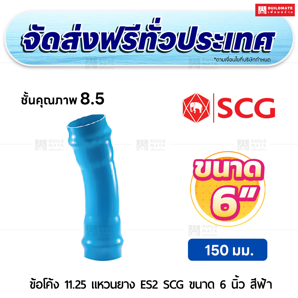 ข้อโค้ง 11.25 องศา แหวนยาง ES 2 PVC ชั้น 8.5 SCG ขนาด 6 นิ้ว สีฟ้า
