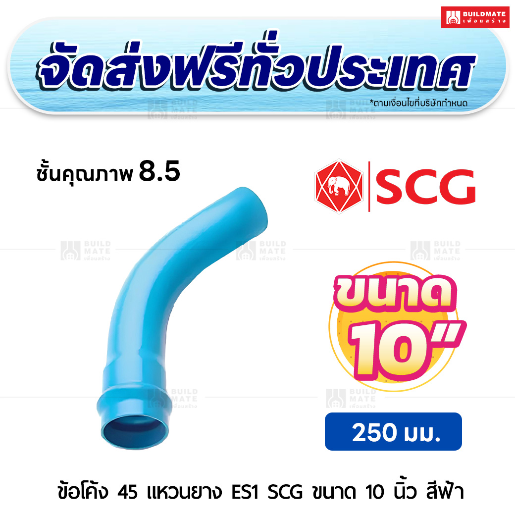 ข้อโค้ง 45 องศา แหวนยาง ES 1 PVC ชั้น 8.5 SCG ขนาด 10 นิ้ว สีฟ้า