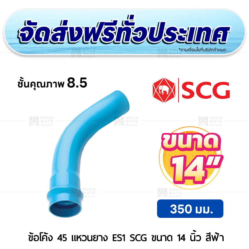 ข้อโค้ง 45 องศา แหวนยาง ES 1 PVC ชั้น 8.5 SCG ขนาด 14 นิ้ว สีฟ้า