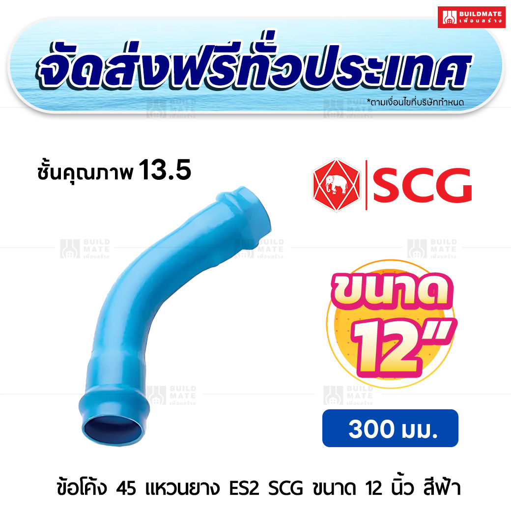 ข้อโค้ง 45 องศา แหวนยาง ES 2 PVC ชั้น 13.5 SCG ขนาด 12 นิ้ว สีฟ้า