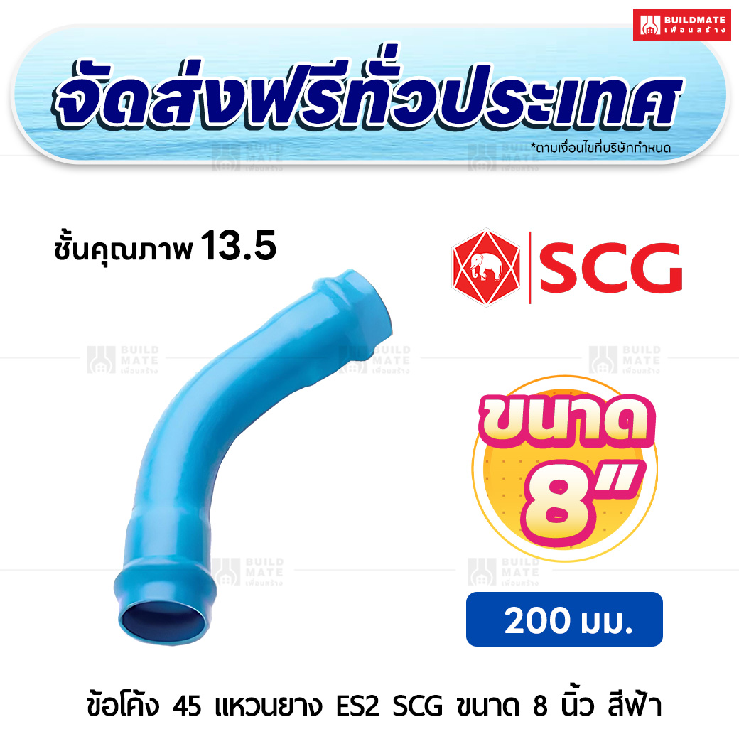 ข้อโค้ง 45 องศา แหวนยาง ES 2 PVC ชั้น 13.5 SCG ขนาด 8 นิ้ว สีฟ้า
