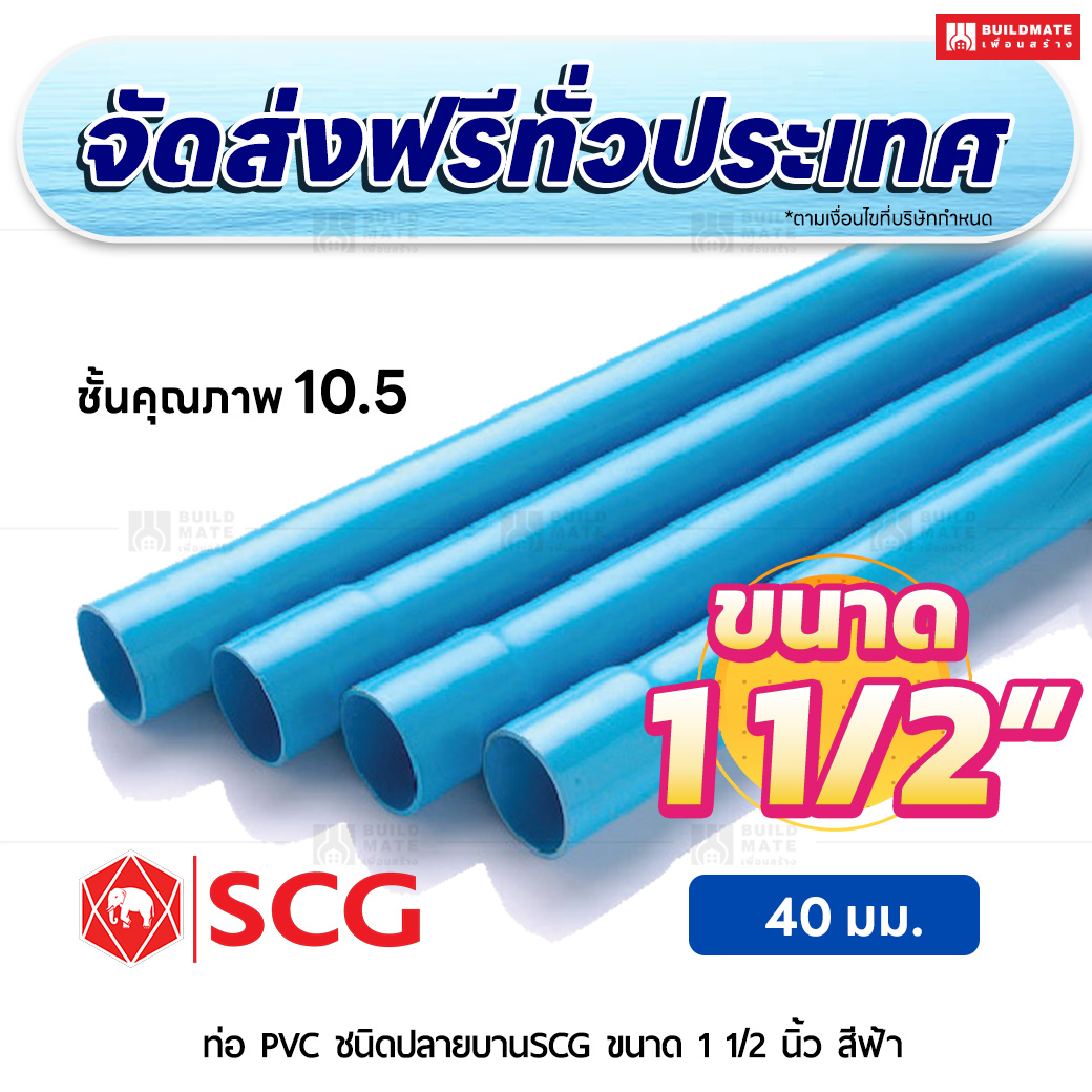 ท่อ PVC ปลายบาน ชั้น 10.5 SCG ขนาด 1 1/2 นิ้ว สีฟ้า
