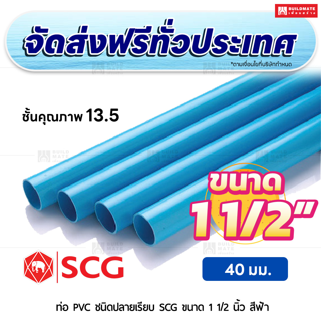 ท่อ PVC ปลายเรียบ ชั้น 13.5 SCG ขนาด 1 1/2 นิ้ว สีฟ้า