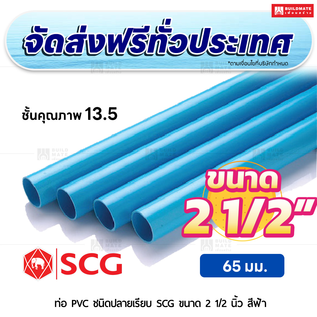 ท่อ PVC ปลายเรียบ ชั้น 13.5 SCG ขนาด 2 1/2 นิ้ว สีฟ้า