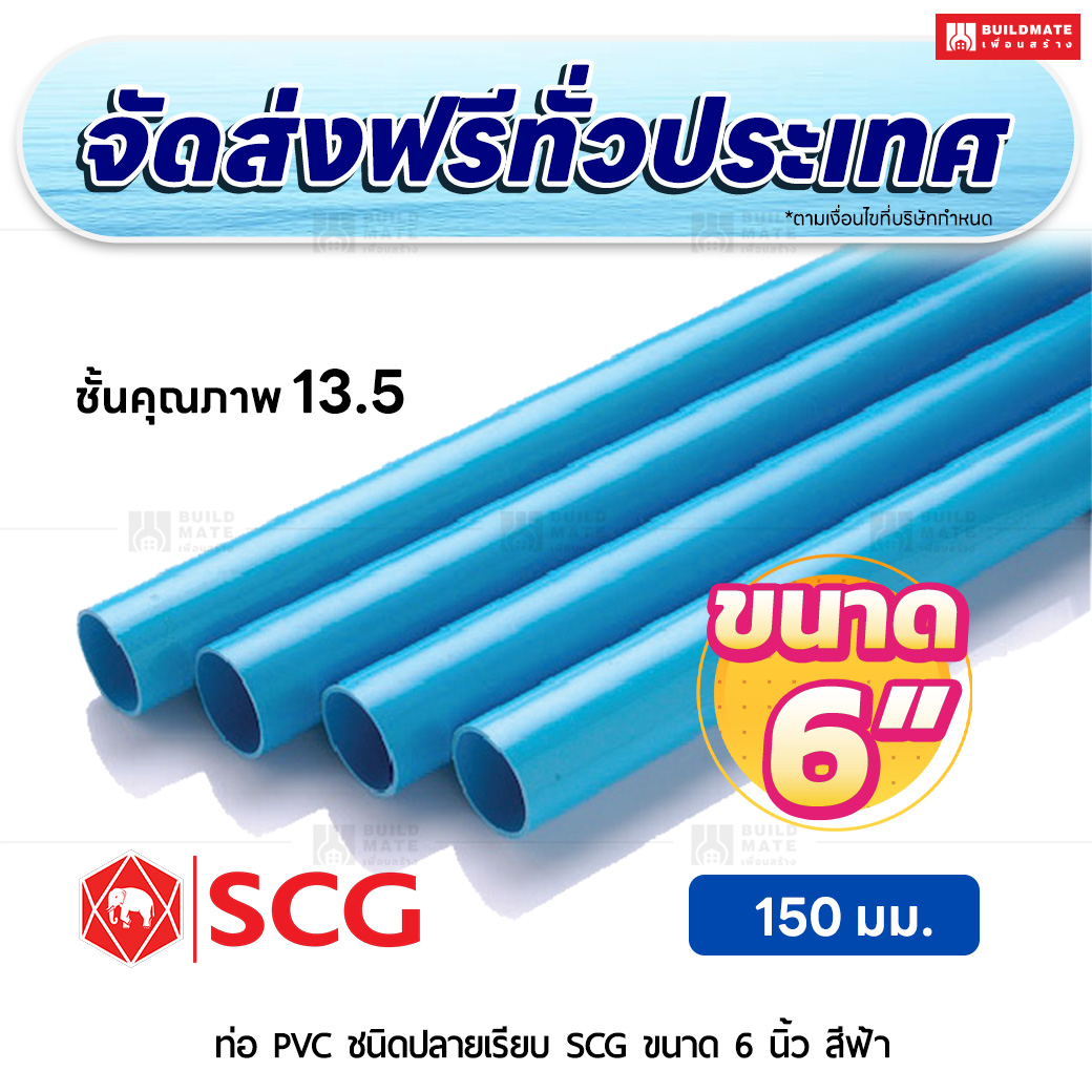 ท่อ PVC ปลายเรียบ ชั้น 13.5 SCG ขนาด 6 นิ้ว สีฟ้า