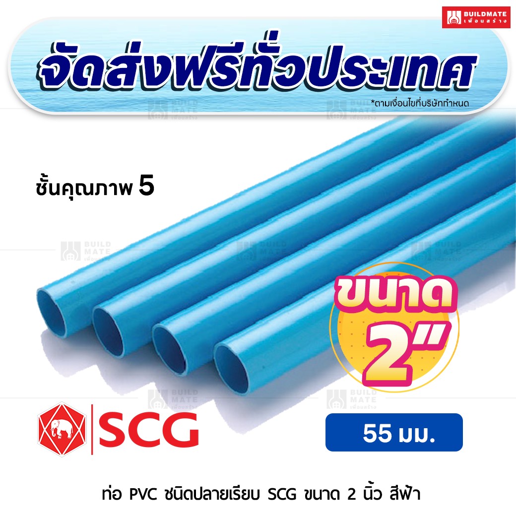 ท่อ PVC ปลายเรียบ ชั้น 5 SCG ขนาด 2 นิ้ว สีฟ้า