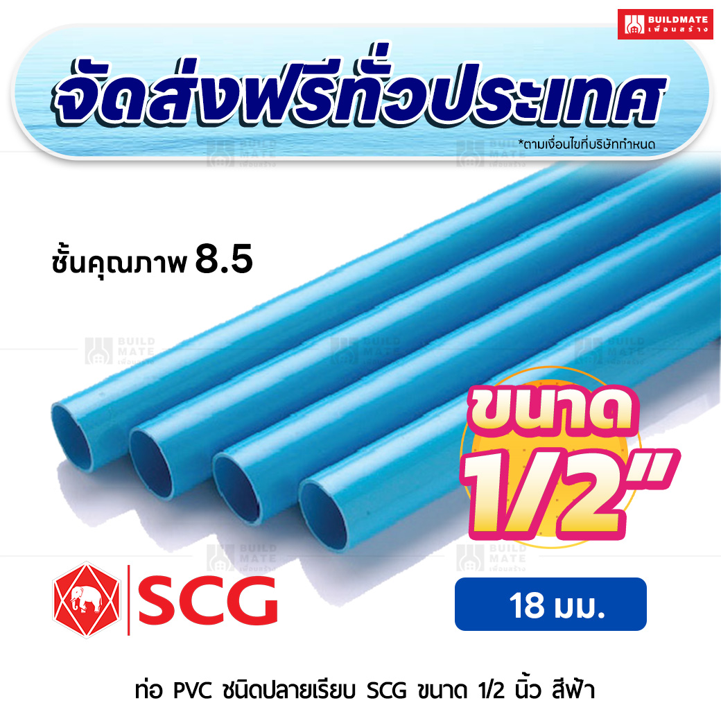 ท่อ PVC ปลายเรียบ ชั้น 8.5 SCG ขนาด 1/2 นิ้ว สีฟ้า